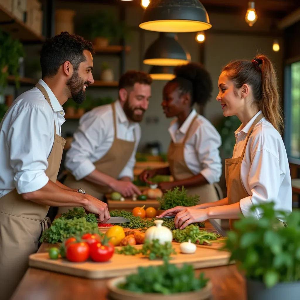 Aprendizaje de recetas orgánicas, uso de ingredientes locales, prácticas culinarias sostenibles.